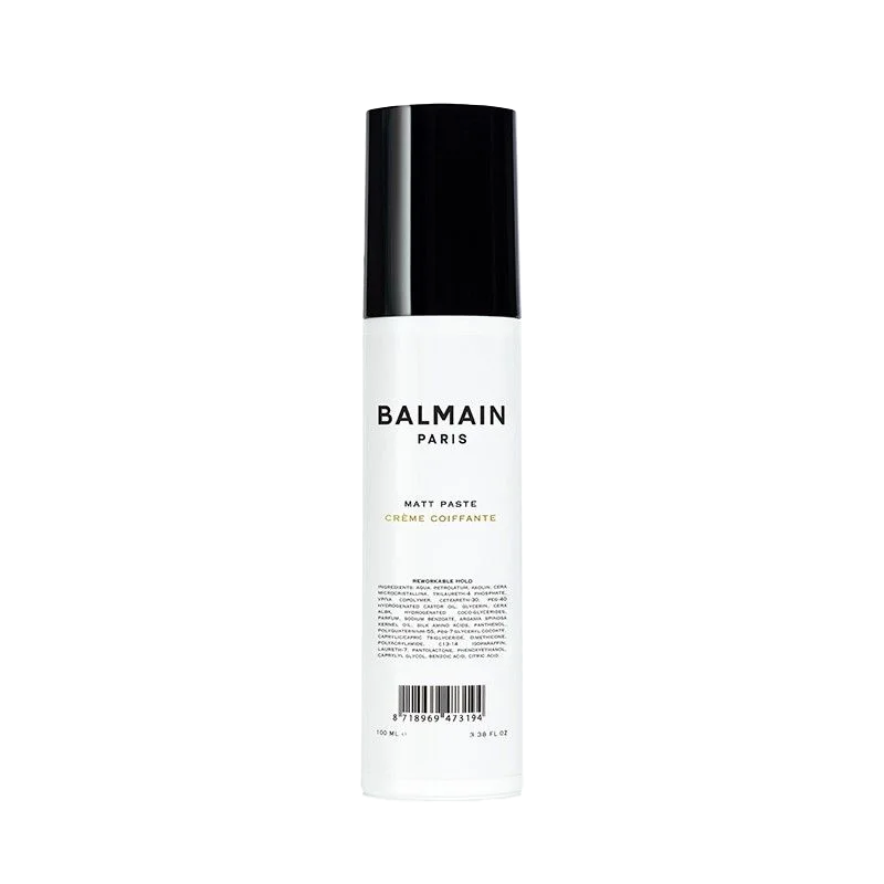Balmain Matt Paste je naravna mat pasta za zaključevanje z spremenljivo obstojnostjo in gladko strukturo. Lasem daje teksturo in definicijo ter pusti lasem mat videz. Nelepljiva formula daje občutek gladkosti in ukroti skodrane lase.