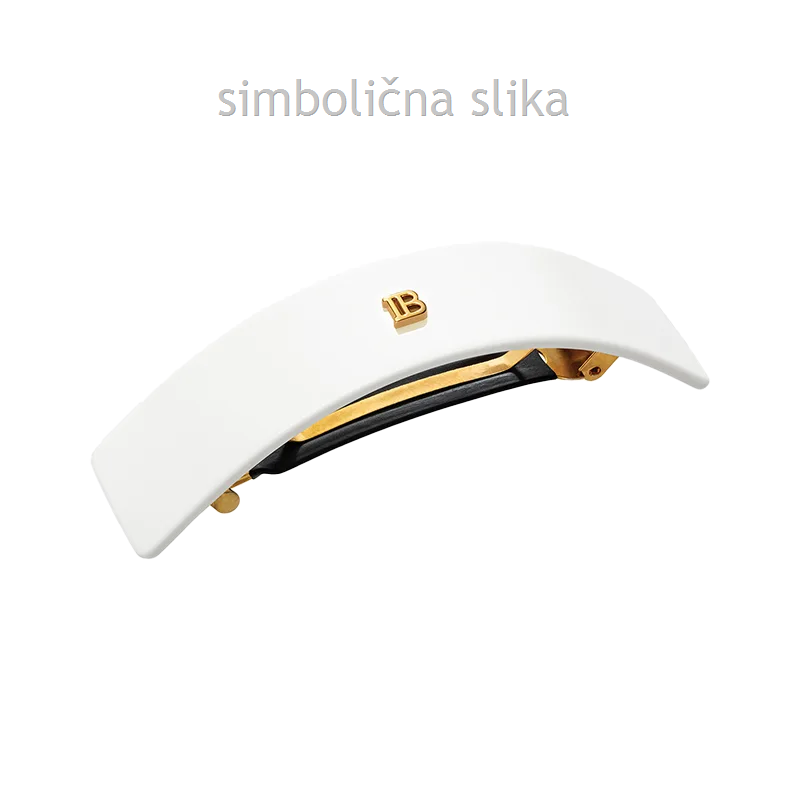 Lasna sponka Barretta izdelana iz trpežnega celuloznega acetata, oblikovana z značilnim Balmainovim 14-karatnim pozlačenim logotipom »B«.