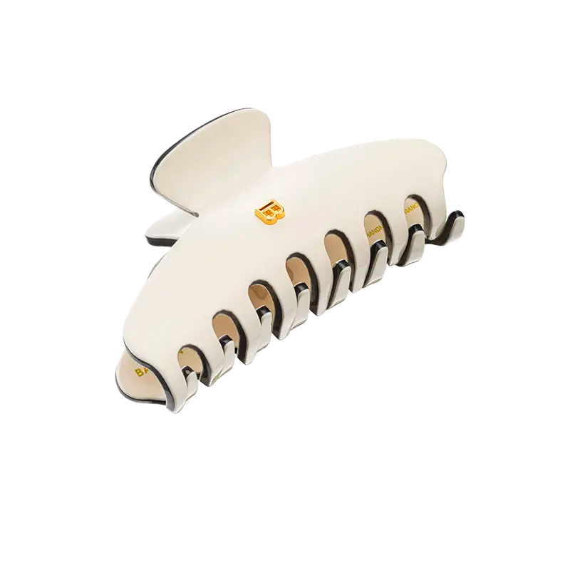 Lasna sponka clip Medium je ročno izdelana iz celuloznega acetata. Oblikovana z detajli v barvi slonovine in z 18K pozlačenim logotipom. Revolucionarni mehanizem sponk se prilagodi količini las v notranjosti in tako zagotovi popoln oprijem.