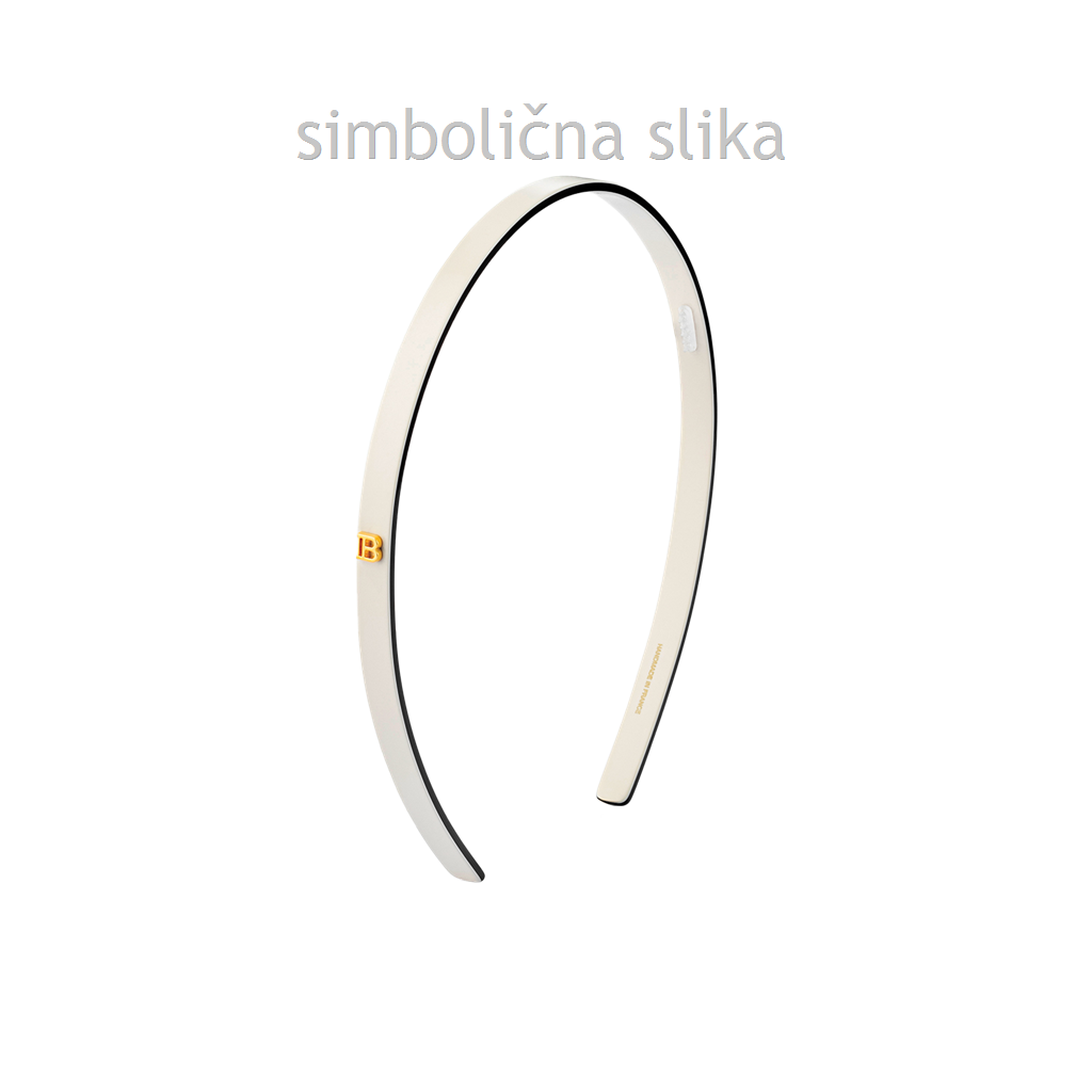 Majhen ročno izdelan naglavni obroč iz trpežnega celuloznega acetata, zasnovan z Balmainovim značilnim 18K pozlačenim logotipom »B«. Po robovih je zaključen s prefinjeno črno barvo. Izjemno močan, a fleksibilen material je hipoalergen in nežen do las in lasišča.