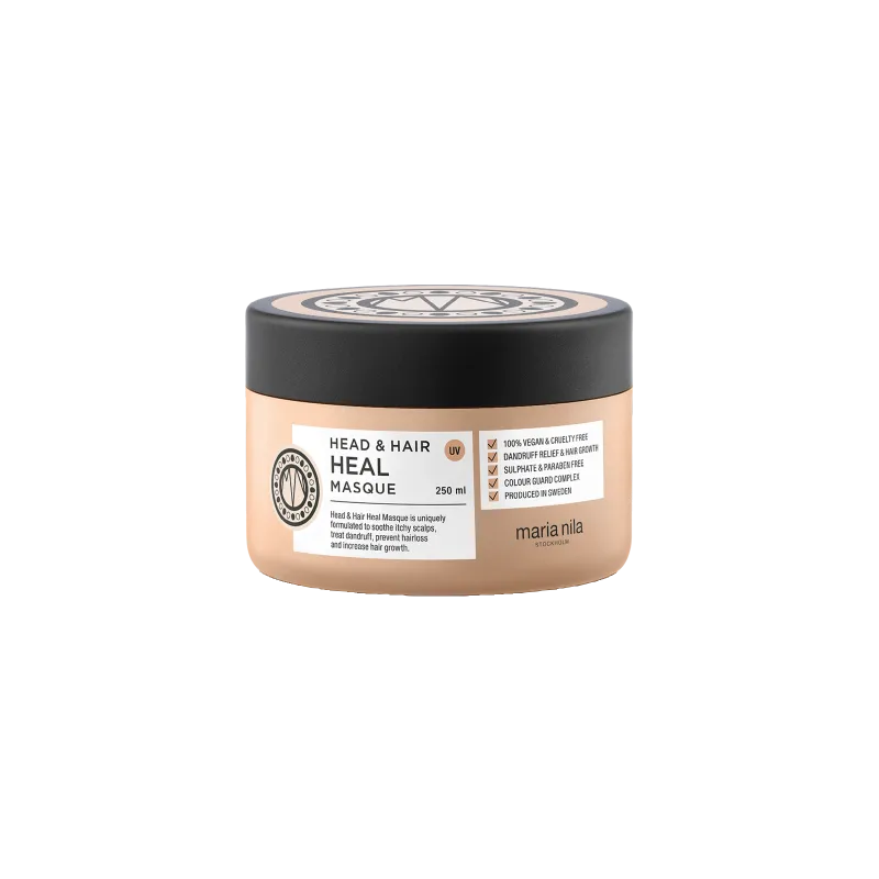 Linija Maria Nila, Head & Hair Heal, ščiti barvo las, zdravi in preprečuje težave s prhljajem ter miri vneto, srbeče lasišče, preprečuje izgubo las in spodbuja rast novih las. Paleta izdelkov vključuje šampon, regenerator in negovalno masko.
