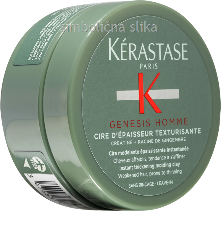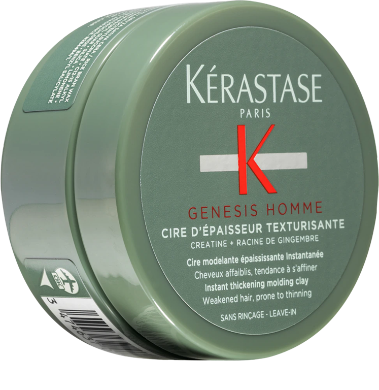 Pasta za moške Kérastase Genesis Homme Cire d'épaisseur Texturisante, obogatena s kreatinom in korenino ingverja, takoj po nanosu zgosti in okrepi krhka lasna vlakna, pričeski pa zagotovi naraven ter gostejši videz.