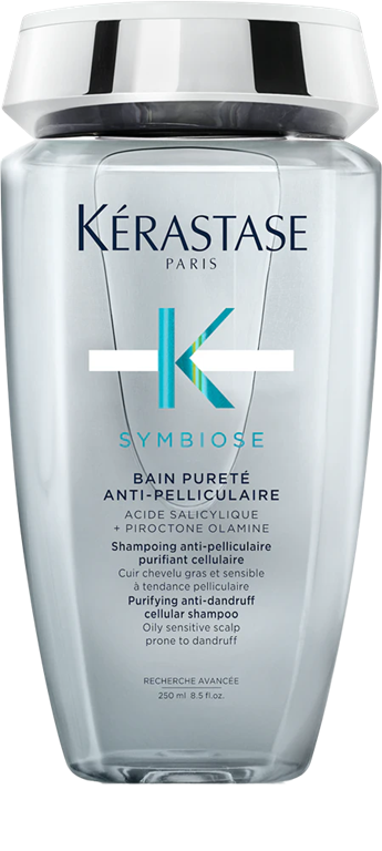 Negi mastnega in občutljivega lasišča, nagnjenega k prhljaju, je namenjen čistilni šampon Kérastase Symbiose Bain Pureté Anti-Pelliculaire. Z negovalno, a lahko penečo sestavo sprosti in odstrani viden prhljaj, učinkuje proti vsem vzrokom za njegov nastanek in pomirja lasišče. Hkrati uravnava proizvodnjo maščobe, preprečuje njeno kopičenje in z las odstrani vso umazanijo in nepotrebne maščobe.