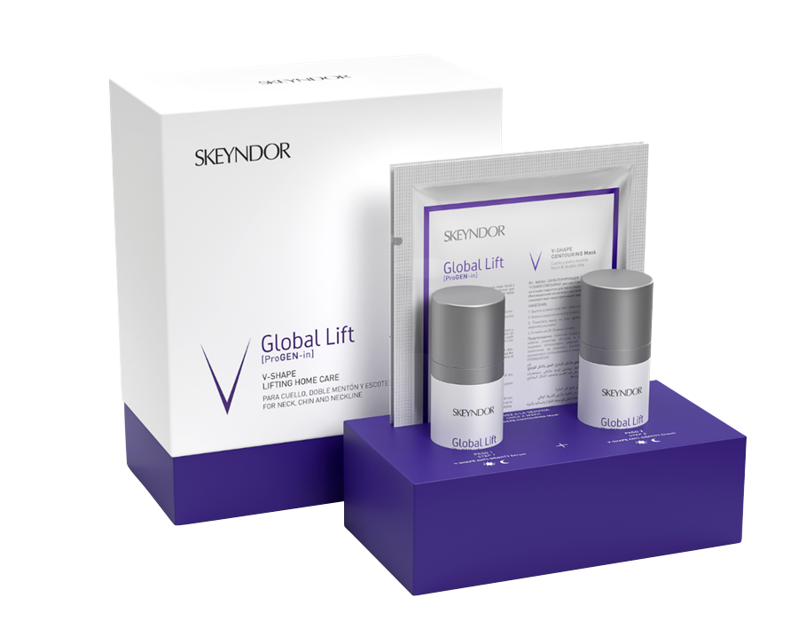 GLOBAL LIFT V-shape je 15 dnevna terapija za globalni lifting in pomlajevanje obraza s tehnologijo ProGEN-in. Gre za globalno tehnologijo proti staranju, katere cilj je izboljšati celični metabolizem, ki se s staranjem upočasnjuje in povzroča izgubo gostote kože ter ohlapnost kožnih tkiv.