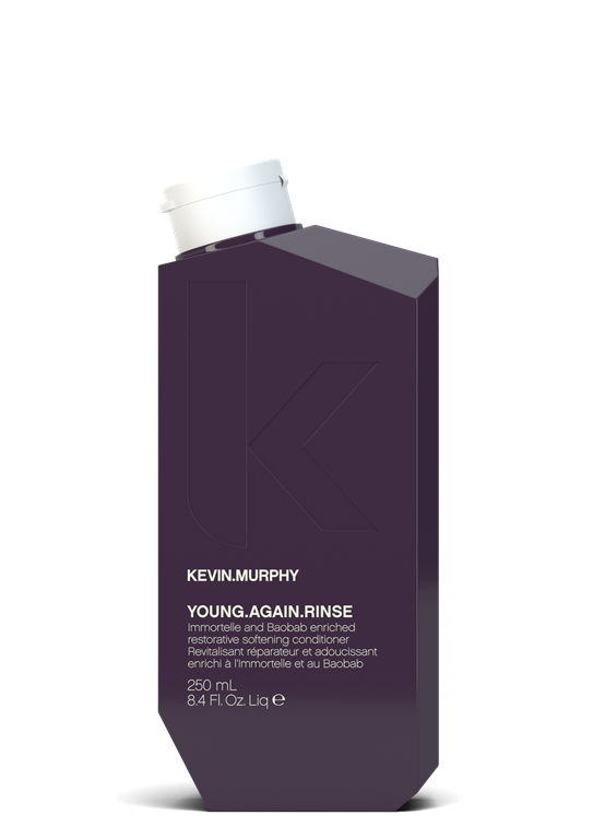 Svojim lasem privoščite mladostni občutek z našim hranilnim balzamom YOUNG.AGAIN.RINSE. Ta luksuzni balzam pomaga obnoviti mladostni lesk suhih, krhkih in poškodovanih las. Vsebuje edinstven kompleks aminokislin, eteričnih olj in sestavin, ki so znane po svojem pomladitvenem učinkovanju, hkrati pa odpravlja naelektrenost las in jim doda sijaj – za lase, ki so bolj mladostni tako na videz kot na otip.