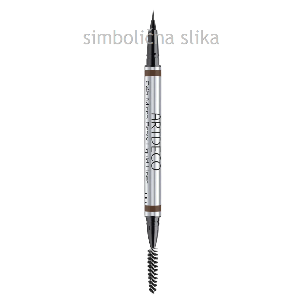 Ultra-natančno 24-urno tekoče črtalo za obrvi Micro Brow Liquid Liner znamke ARTDECO ti omogoča popolno oblikovanje in definiranje obrvi. Fleksibilna, izjemno tanka konica s premerom le 0,01 mm omogoča natančen nanos in risanje tako tankih kot debelejših linij, ki posnemajo videz naravnih dlačic. Zapolni prazna mesta s subtilnimi potezami in ustvarjaj izjemno naraven videz.