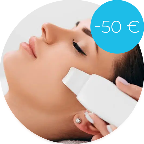 - Ultrazvočno čiščenje: nežno odstranimo nečistoče, odmrle celice in odvečno maščobo iz globljih plasti kože ter jo globinsko očistimo in pripravimo na nego.